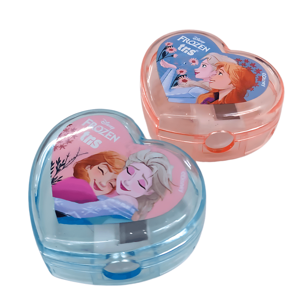 Apontador com lindas estampas e depósito – que evita sujeira. Lâmina antiferrugem e é em formato de coração!