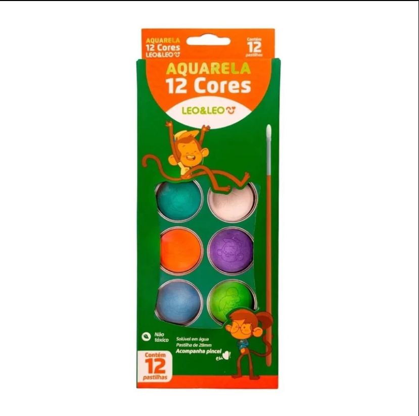 Aquarela 12 cores é lavavel, solúvel em água, acompanha pincel e vem um lindo estojo godê. Sua tampa godê pode ser utilizada para mistura da águae suporte da pintura.