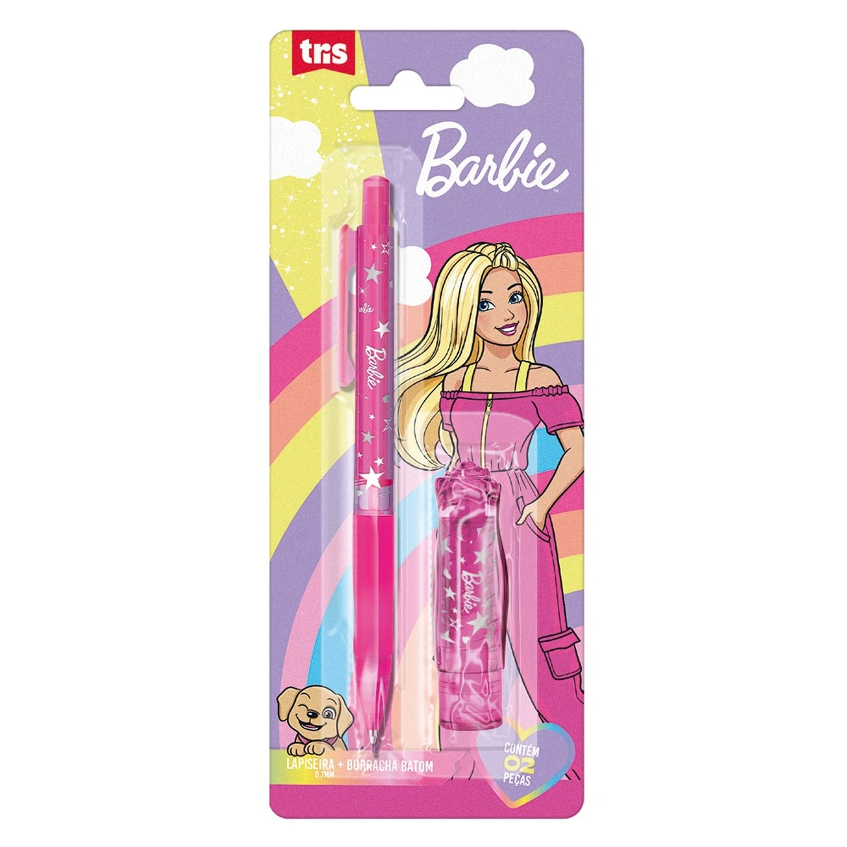 Desde 1959, a Barbie tem inspirado meninas a serem o que quiserem – fadas, princesas, astronautas e biólogas, não há limites! Barbie inspira crianças e jovens a explorarem sua personalidade e criarem seu próprio mundo. O kit Barbie possui 2 peças: borracha em formato de batom com molde de flor na tampa e estampa no corpo e mecanismo retrátil + lapiseira com traço 0,7mm, linda estampa, borracha no topo e ponta metálica retrátil.