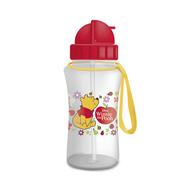 Quem ama o Pooh, Tigrão, Leitão e toda turminha vai adorar de paixão a Garrafa Plástica com Canudo e Alça 450 ML Ursinho Pooh – Caixa com 1 Un Leo&Leo.
