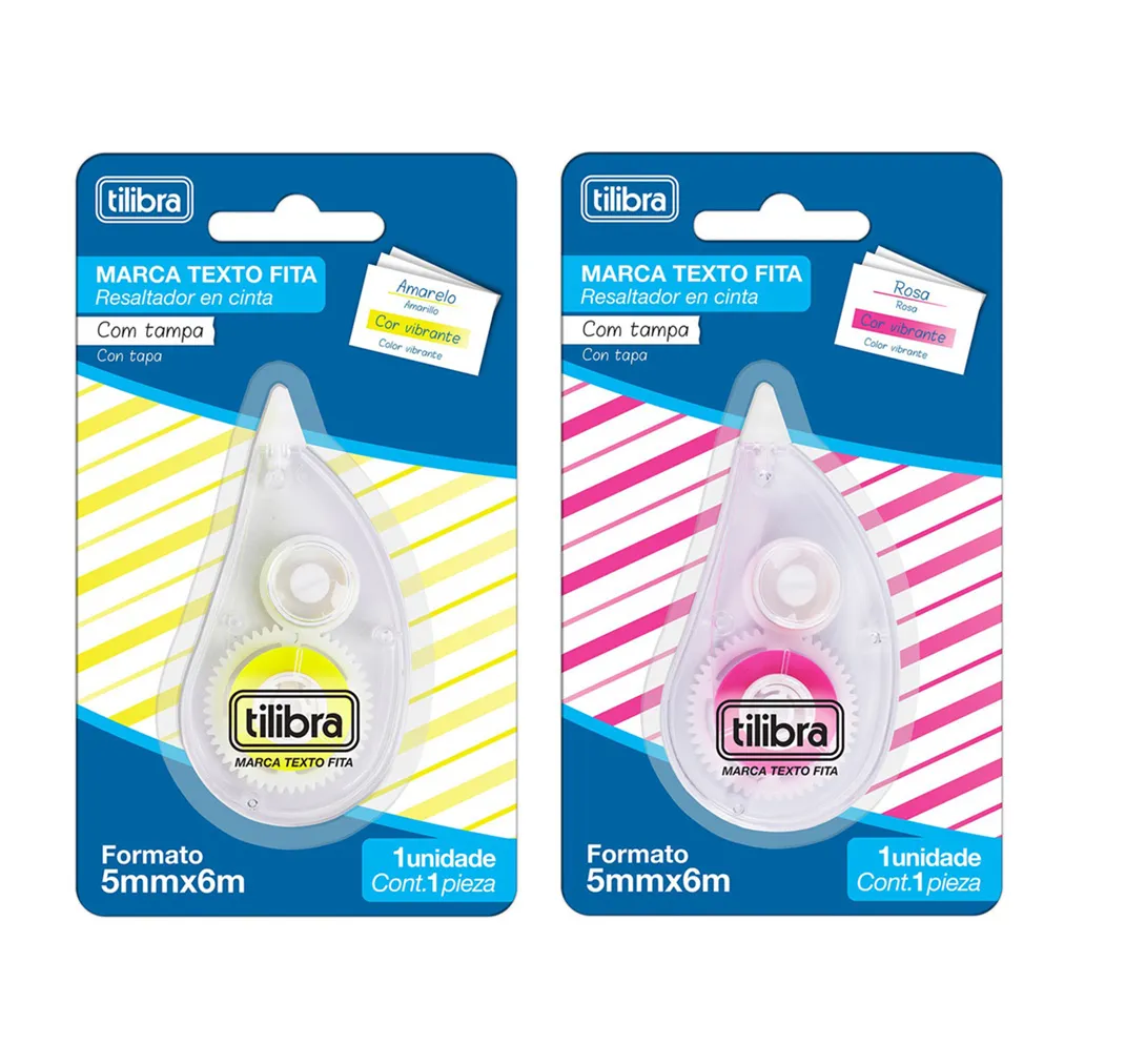 O Marca-Texto em Fita é fácil e prático de usar, ideal para fazer qualquer tipo de marcação em documentos do escritório e atividades da escola. Este produto tem formato de 5mm x 6m e cor da fita amarelo ou rosa vibrante.